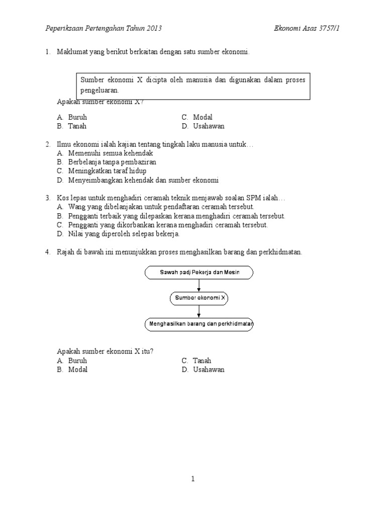 Soalan Ekonomi Asas Kertas 1 Tingkatan 5 Pdf